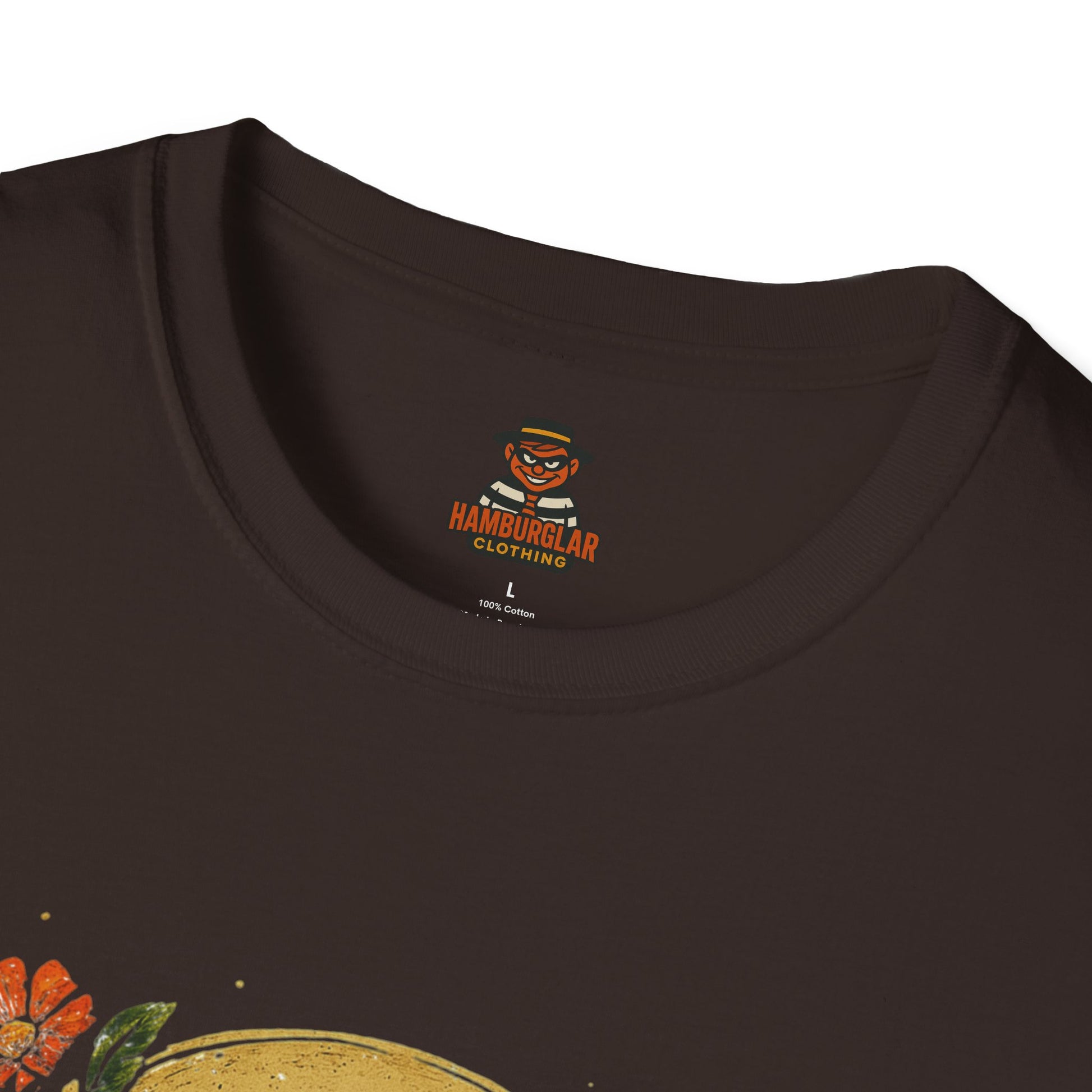 Floral Skull Unisex Softstyle T-Shirt | Edgy Graphic Tee for Festivals, Halloween & Everyday Wear, Boho Clothing, Unique Gift Idea
